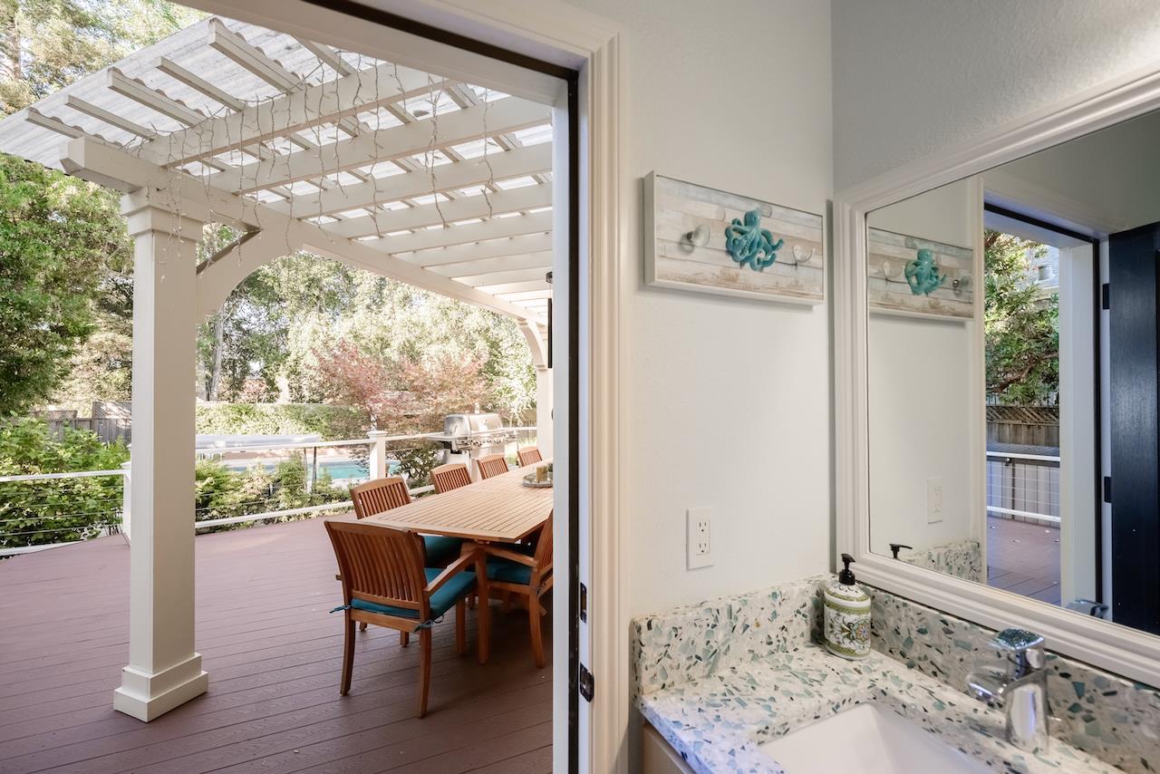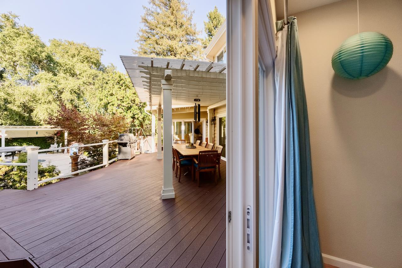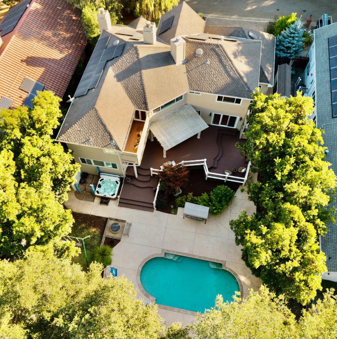 Welcome to this stunning executive residence, situated on a spacious 1/4 acre lot on a quiet cul-de-sac. From the moment you step inside, the grand entry w/ its sweeping staircase and soaring ceilings sets the tone for elegance and comfort. The main level features marble tile & red oak hardwood flooring throughout, formal living room w/ fireplace, & separate family room w/ serene backyard views. The gourmet kitchen w/ high-end appliances, quartz slab countertops, a center island, custom cabinetry, pantry, & informal dining area along w/ a separate formal dining room for entertaining. Downstairs also includes a convenient guest suite w/ private backyard access. Upstairs, the expansive primary suite offers a fireplace, walk-in closet, & luxurious en suite bath w/ oversized tub & separate shower. Two additional bedrooms, a laundry room, and a delightful hidden hobby room (not included in square footage) complete the upper level. The backyard is an entertainers dream, with a large Trex deck, sparkling pool, spa, pergola, lawn, and garden areas plus generous side yards. A spacious 3-car garage & solar power add practicality to this exceptional home. Minutes to Hwy 17 and the beach, plus walking distance to shopping, restaurants, parks and everything Scotts Valley has to offer!