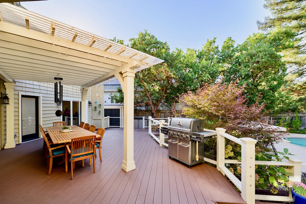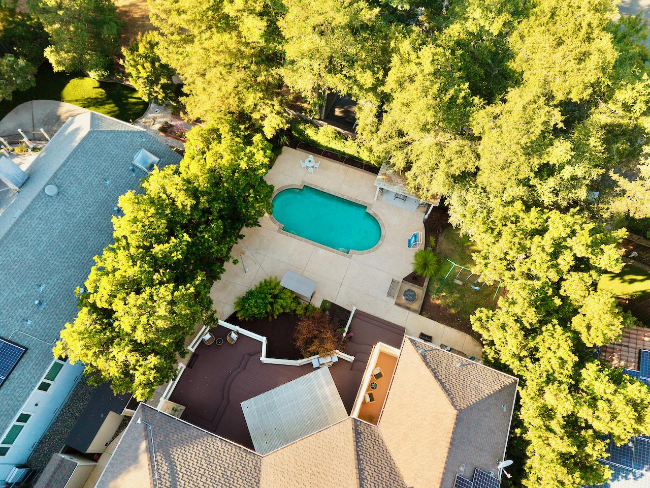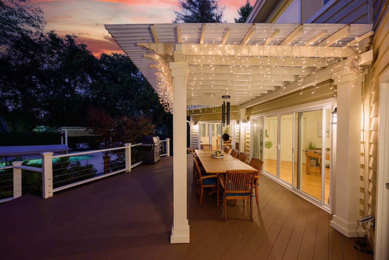 Welcome to this stunning executive residence, situated on a spacious 1/4 acre lot on a quiet cul-de-sac. From the moment you step inside, the grand entry w/ its sweeping staircase and soaring ceilings sets the tone for elegance and comfort. The main level features marble tile & red oak hardwood flooring throughout, formal living room w/ fireplace, & separate family room w/ serene backyard views. The gourmet kitchen w/ high-end appliances, quartz slab countertops, a center island, custom cabinetry, pantry, & informal dining area along w/ a separate formal dining room for entertaining. Downstairs also includes a convenient guest suite w/ private backyard access. Upstairs, the expansive primary suite offers a fireplace, walk-in closet, & luxurious en suite bath w/ oversized tub & separate shower. Two additional bedrooms, a laundry room, and a delightful hidden hobby room (not included in square footage) complete the upper level. The backyard is an entertainers dream, with a large Trex deck, sparkling pool, spa, pergola, lawn, and garden areas plus generous side yards. A spacious 3-car garage & solar power add practicality to this exceptional home. Minutes to Hwy 17 and the beach, plus walking distance to shopping, restaurants, parks and everything Scotts Valley has to offer!